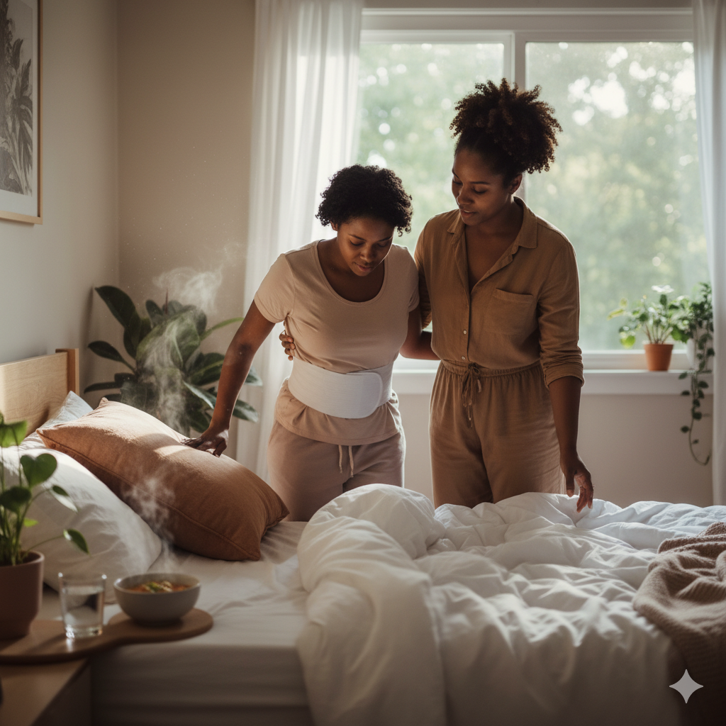 Your doula will prepare meals using our Black southern traditional-based healing cookbook — recipes specifically chosen to support surgical recovery, reduce inflammation, and rebuild your strength.